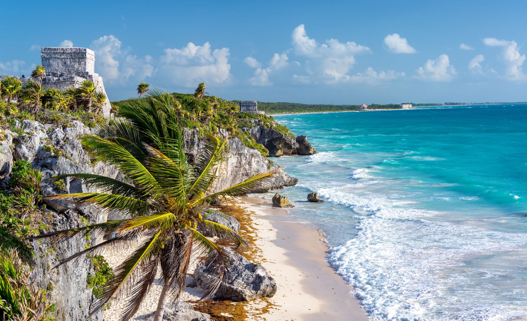 Tulum is a town on the Caribbean coastline of Mexico’s Yucatán Peninsula. It’s known for its beaches and well-preserved ruins of an ancient Mayan port city. The main building is a large stone structure called El Castillo (castle), perched on a rocky cliff above the white sand beach and turquoise sea. Near the ruins is the Parque Nacional Tulum, a coastal area with mangroves and cenotes (natural limestone sinkholes